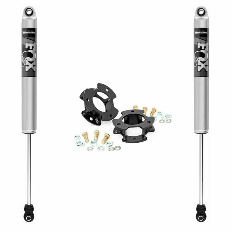 Eleve su automóvil con un elevador de suspensión de 2″.  Este elevador fácil de instalar combina una gran apariencia y durabilidad. Las almohadillas amortiguadoras Rough Country hechas de aluminio de alta calidad ofrecen confiabilidad y resistencia a la humedad y al óxido.